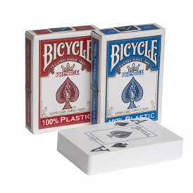 Карты покерного размера из 100% пластика для игры в покер приятно держать в руках, что доставляет особое удовольствие во время очередной партии. Игральные карты Bicycle Prestige можно всегда брать с собой в дорогу или на отдых, ведь благодаря своим сравнительно небольшим размерам карты легко помещаются в любую, даже самую маленькую женскую сумочку.