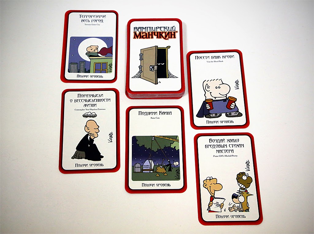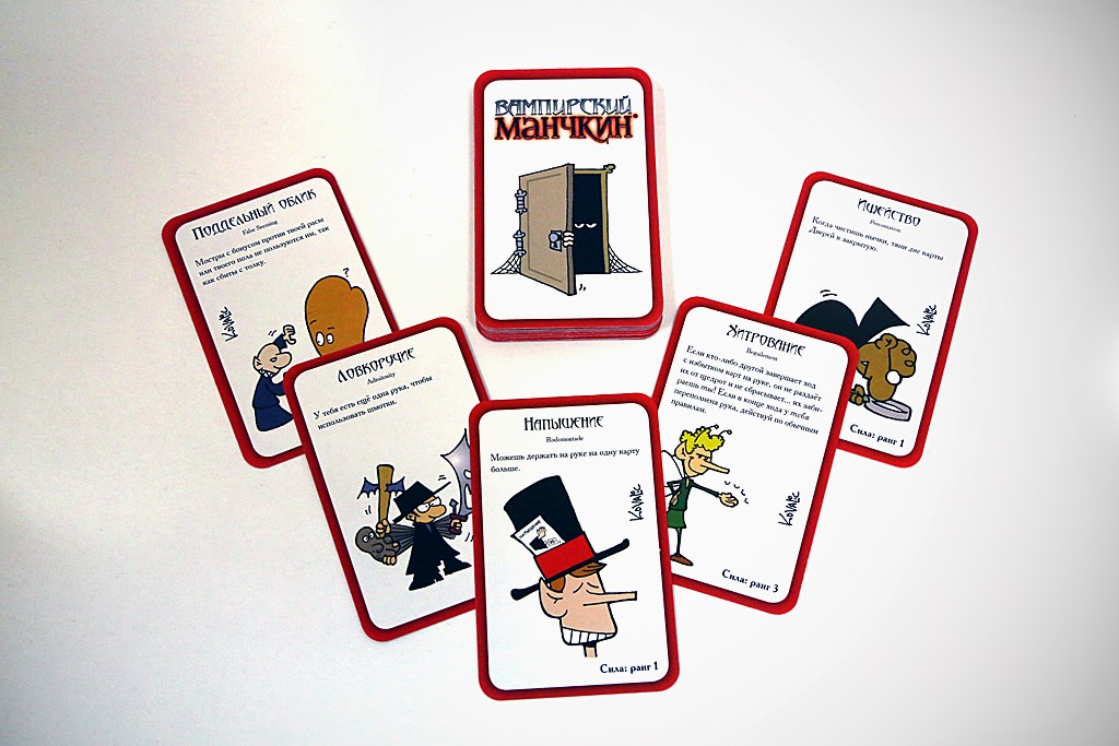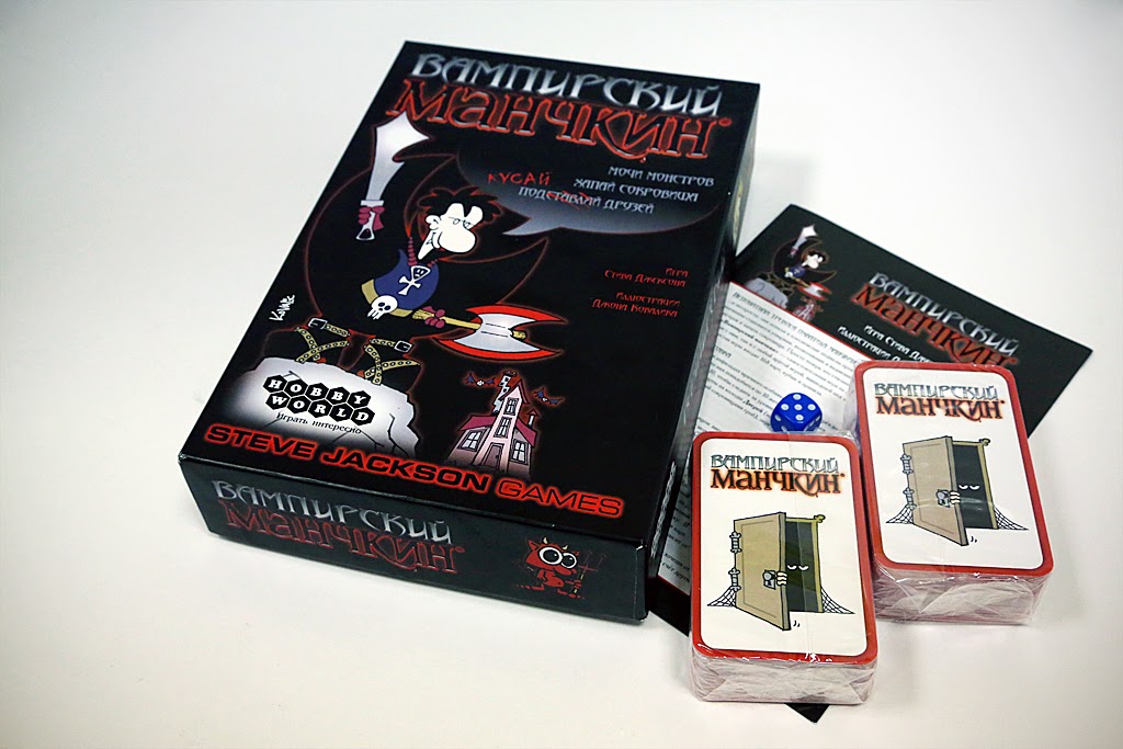 Данная игра совершенно переделывает мир Манчкина, добавляя в него вампиров. Теперь игра будет интересна не только поклонникам серии, но и любителям светлокожих кровососущих существ. Здесь вы сможете выбрать за кого играть – упырь, подменыш или волколак, а дополнительно призывать себе на помощь маленьких миньонов. Есть возможность использования магии и временных улучшении. Цель игры осталась неизменной – добыть как можно больше сокровищ и добраться до заветного десятого уровня.